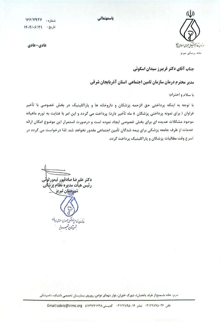 اعتراض به سازمان تامین اجتماعی استان آذربایجان شرقی در خصوص تاخیر در پرداختی ها